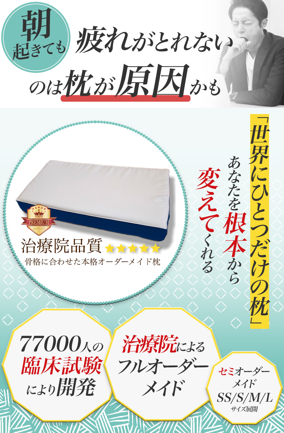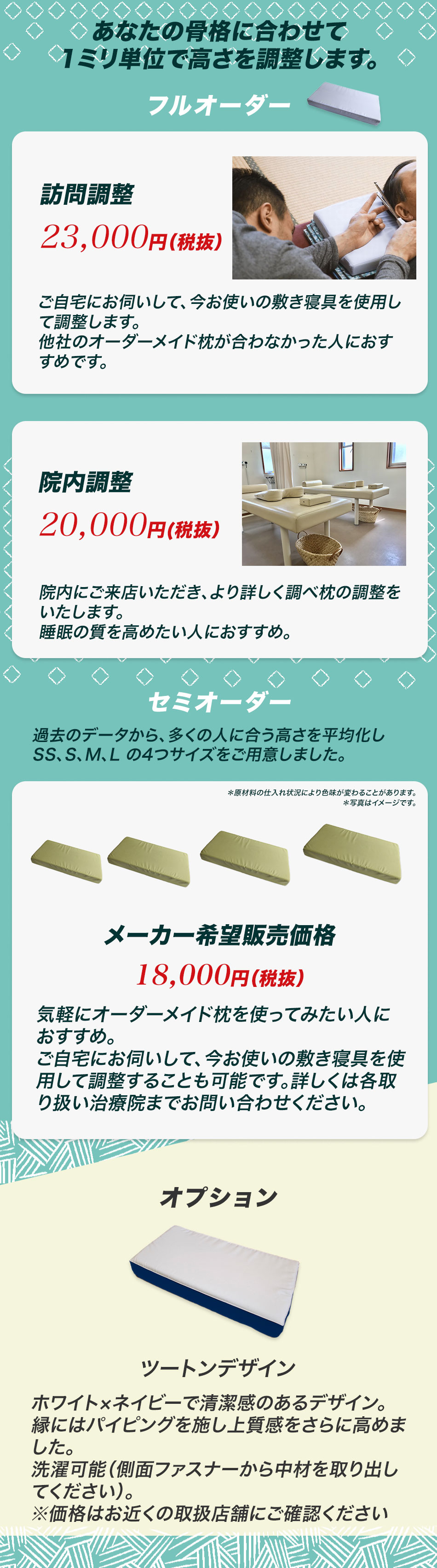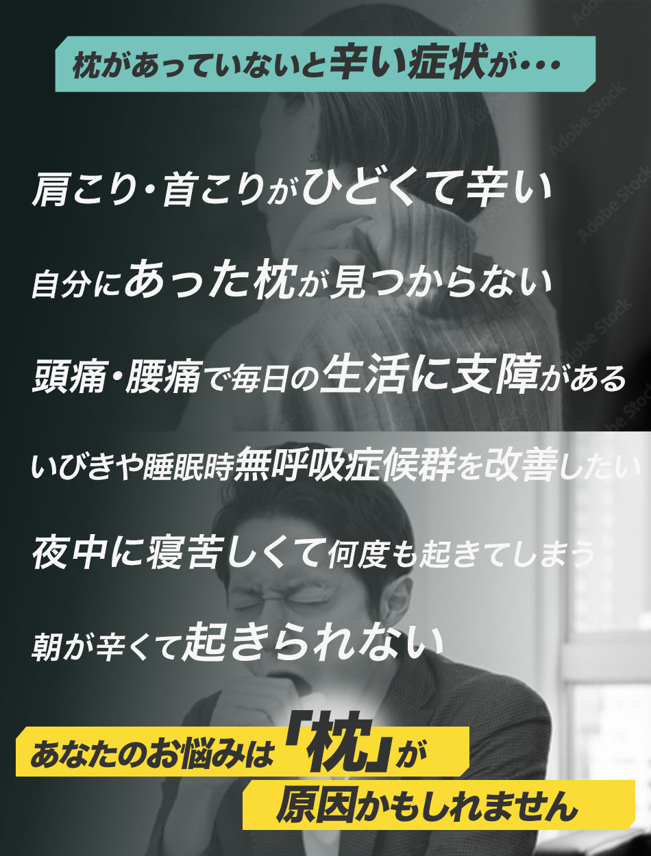 「気持ちよく眠りたい」「枕にこだわりたい」など、どなたでもご購入いただけます。合わない枕は頚椎の組織に負担がかかるので、将来の健康の為にも是非ご検討ください。