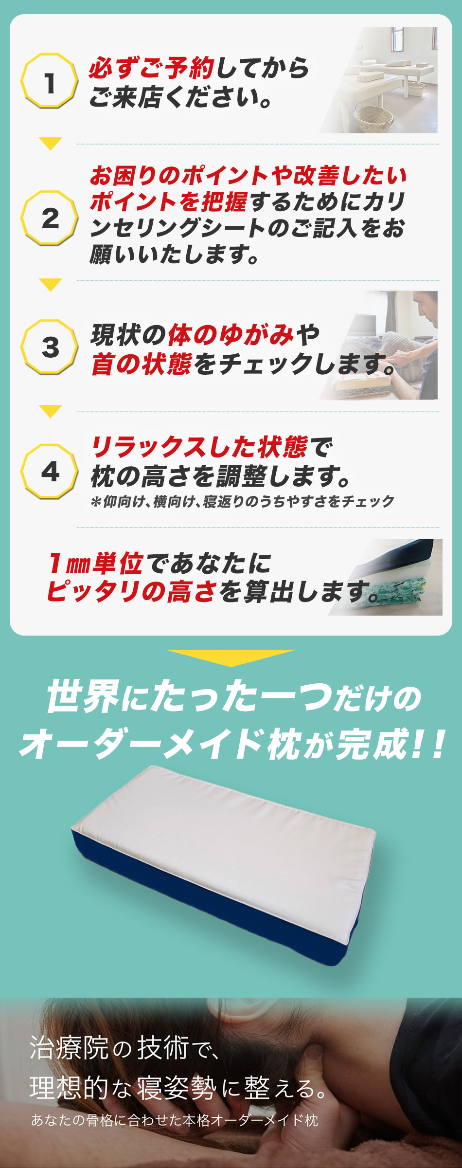 治療院でオーダーメイド枕を作れるってあんまり聞いたことがなかったけど、私は肩こりがひどいので確かに治療院で作った方がいいと思いました(笑)